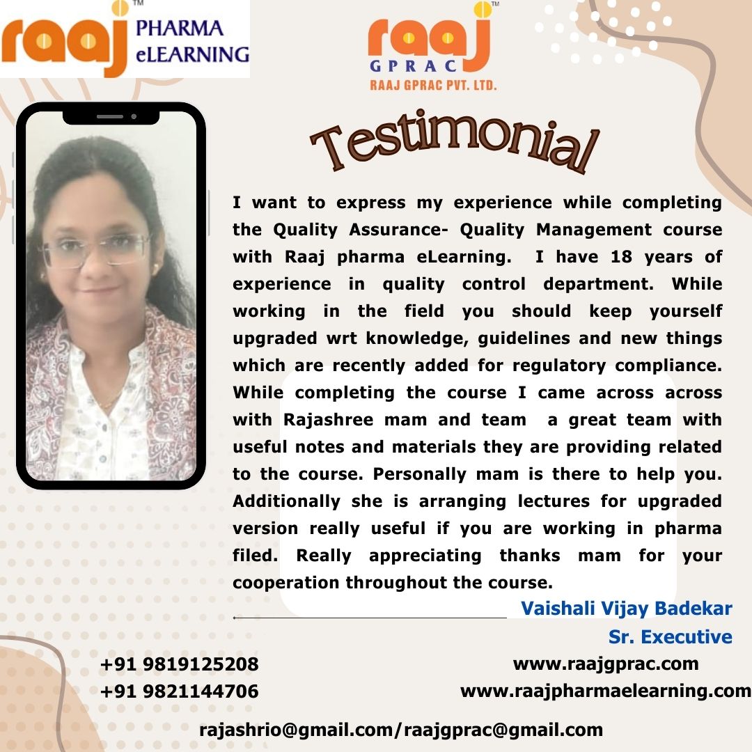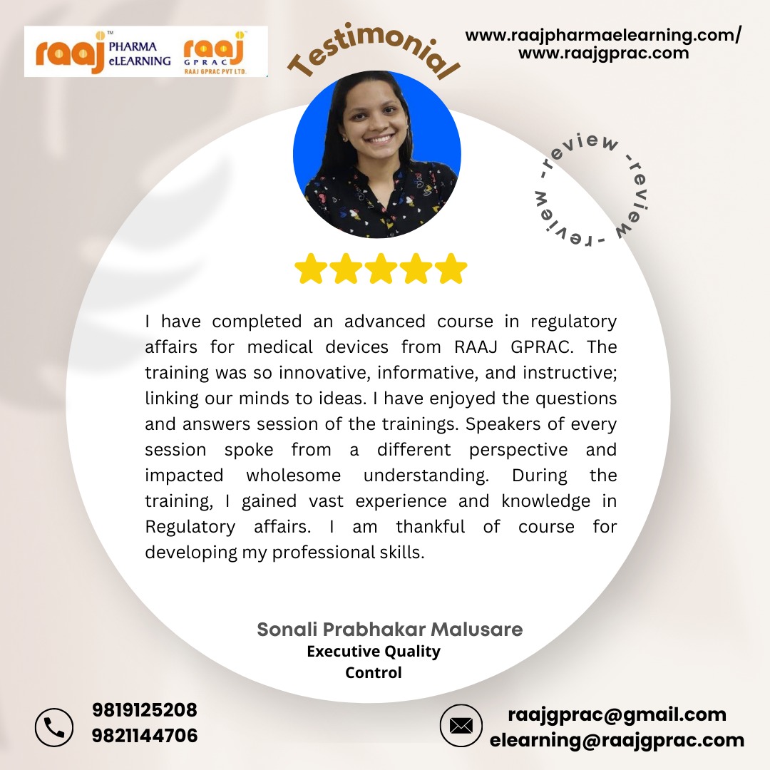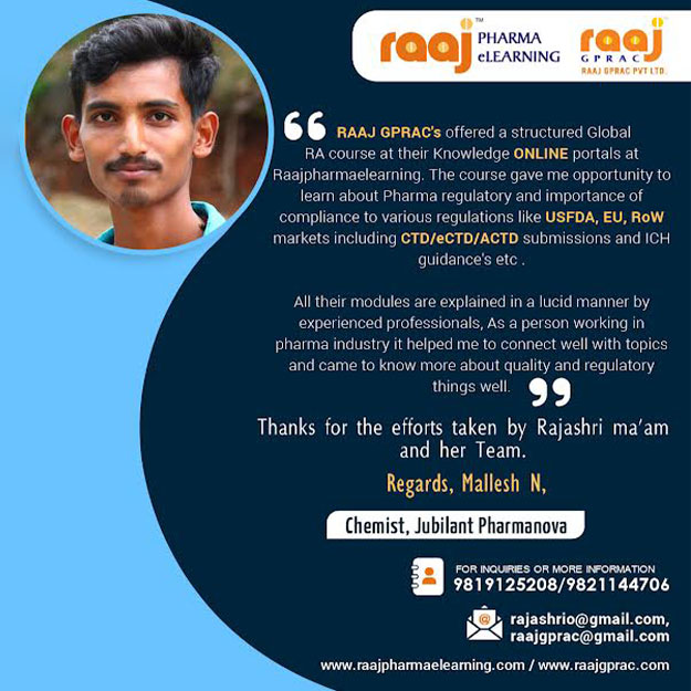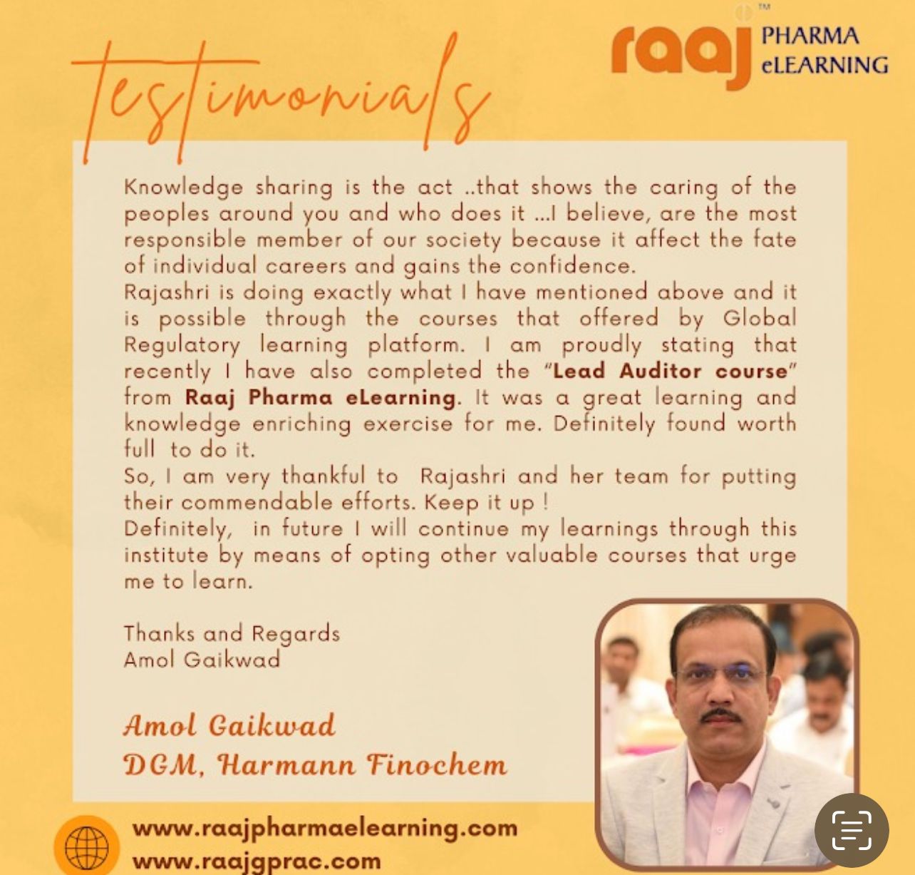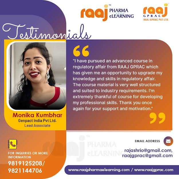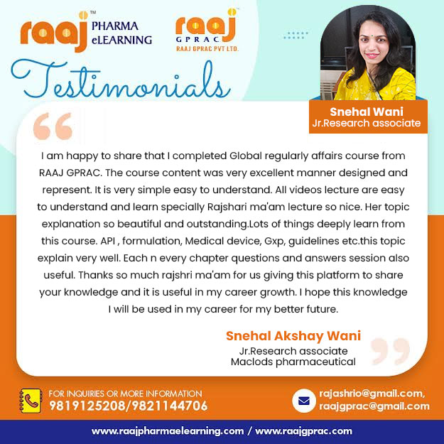 RAAJ GPRAC /RaajpharmaeLearning Affiliated by Etherea Global University, USA !! and Accredited as per ISO 20001-2018. For more details, please contact on